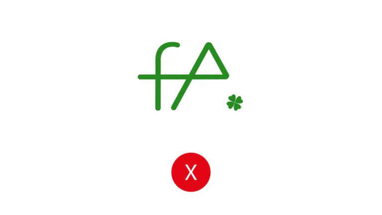 Die Farben, Formen und Proportionen des Logos sind unveränderlich. Bei Abbildungen muss um das Logo herum immer ein Mindestabstand eingehalten werden. Als Richtlinie kann die Breite/Höhe des Signets (Kleeblatt) aus dem Logo zur Definition der Schutzzone verwendet werden. Dieser definierte Freiraum – der Schutzraum – bewahrt das Logo vor Gestaltungseinflüssen wie Grafiken, Flächen, Linien oder Typografie.